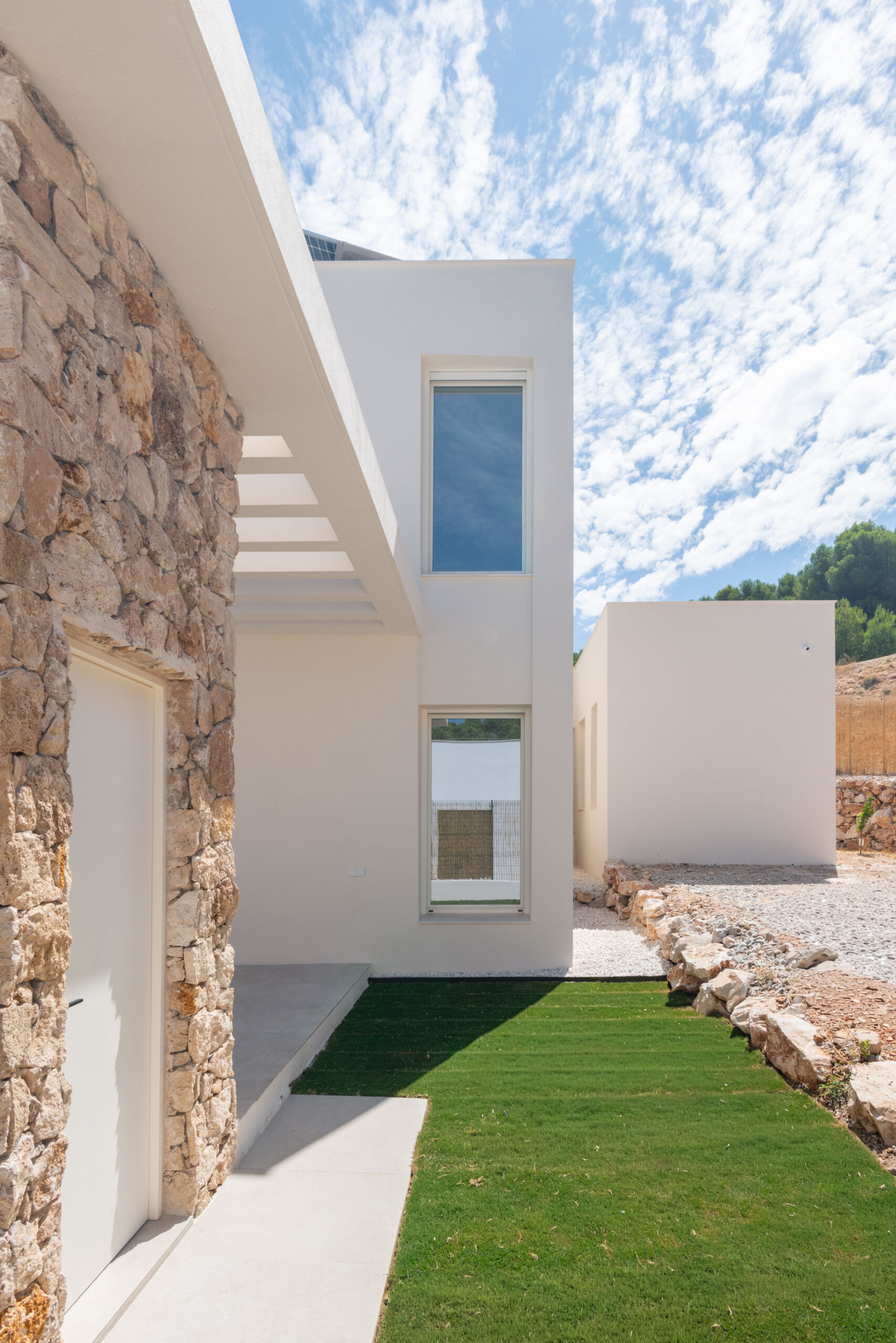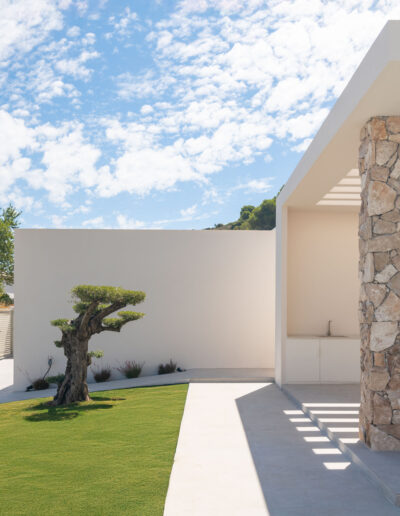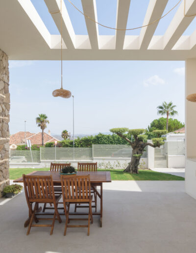 Se proyecta una vivienda unifamiliar con un programa funcional que responde a las exigencias y requisitos manifestados de la propiedad. Por ello, la vivienda se organiza casi totalmente en una sola planta baja, salvo la sala de lectura y trabajo que se dispone sobre el salón creando una doble altura sobre el comedor.